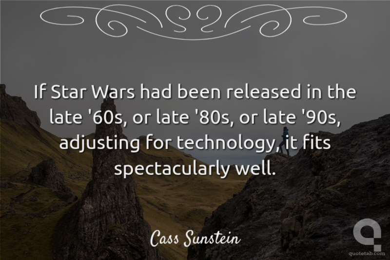 On reflection, some things do super well because they hit with the time. Some things do super well because they are able to activate a kind of echo chamber or bandwagon or cascade - they didn't particularly hit with the time. Some things are just too astonishingly good to not hit the top. Those three explanations, with respect to the Star Wars phenomenon, seem to me all to pass the plausibility test, and to explore them, with respect to Star Wars, I think casts light not just on the saga of our time, but also on everything about our culture.