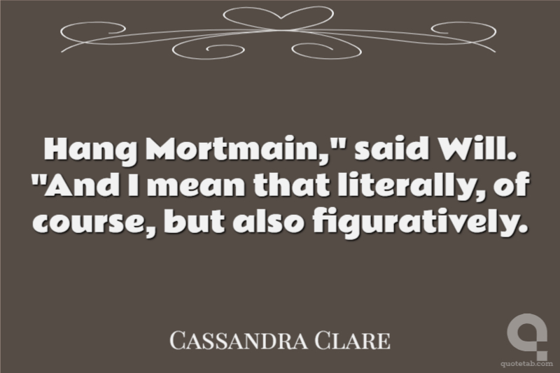 Hang Mortmain," said Will. "And I mean that literally, of course, but also figuratively.