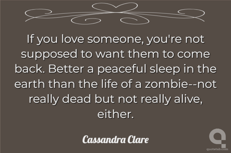 If you love someone, you're not supposed to want them to come back. Better a peaceful sleep in the earth than the life of a zombie--not really dead but not really alive, either.