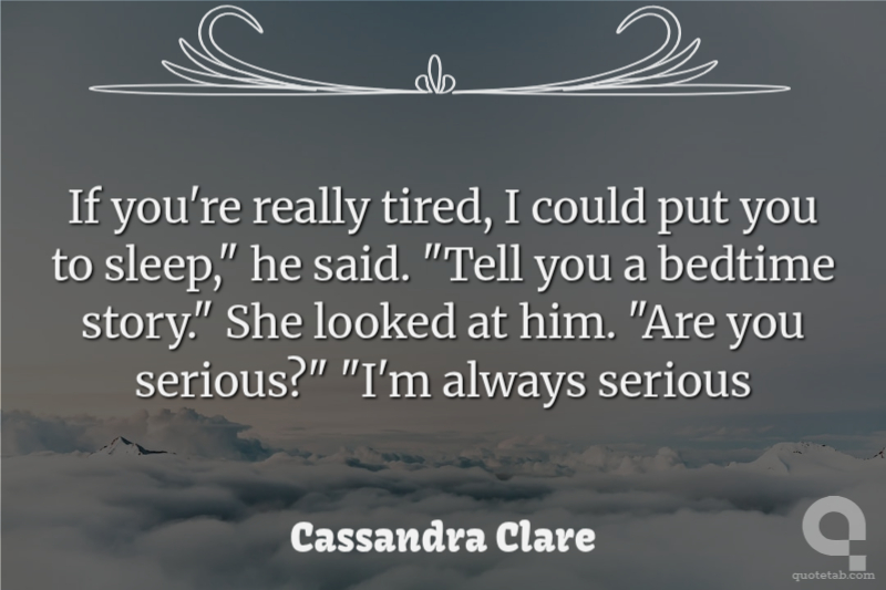 If you're really tired, I could put you to sleep," he said. "Tell you a bedtime story." She looked at him. "Are you serious?" "I'm always serious