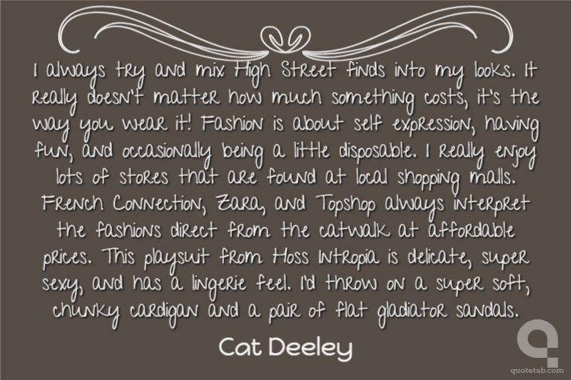 I always try and mix High Street finds into my looks. It really doesn't matter how much something costs, it's the way you wear it! Fashion is about self expression, having fun, and occasionally being a little disposable. I really enjoy lots of stores that are found at local shopping malls. French Connection, Zara, and Topshop always interpret the fashions direct from the catwalk at affordable prices. This playsuit from Hoss Intropia is delicate, super sexy, and has a lingerie feel. I'd throw on a super soft, chunky cardigan and a pair of flat gladiator sandals.
