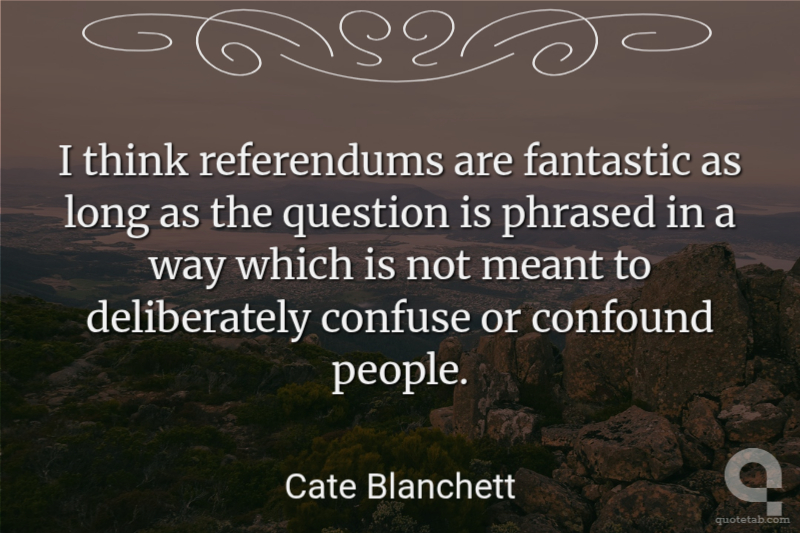 I think referendums are fantastic as long as the question is phrased in a way which is not meant to deliberately confuse or confound people.