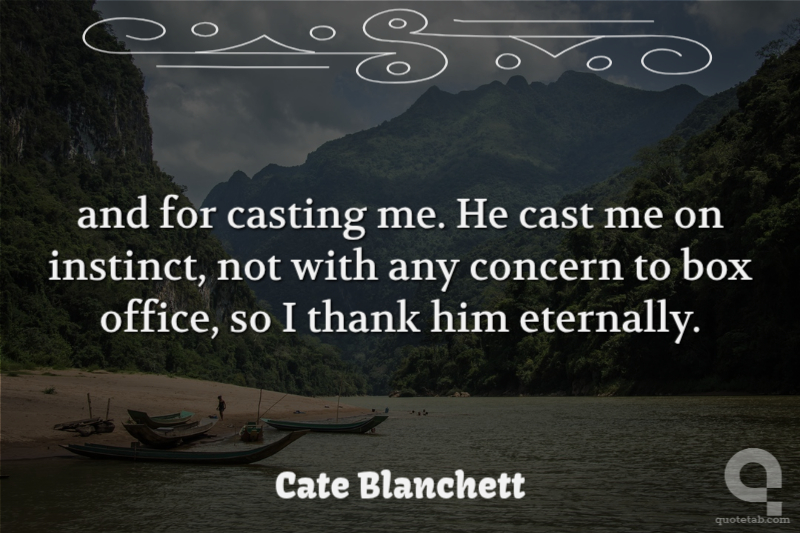 and for casting me. He cast me on instinct, not with any concern to box office, so I thank him eternally.