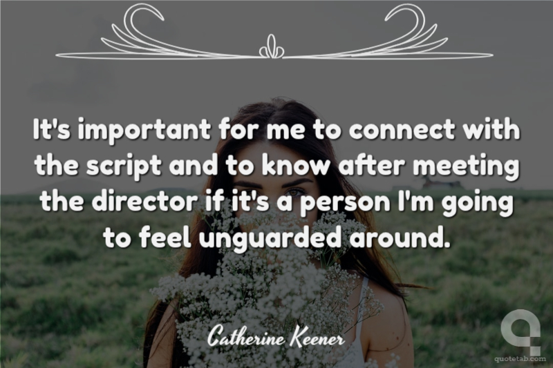 It's important for me to connect with the script and to know after meeting the director if it's a person I'm going to feel unguarded around.