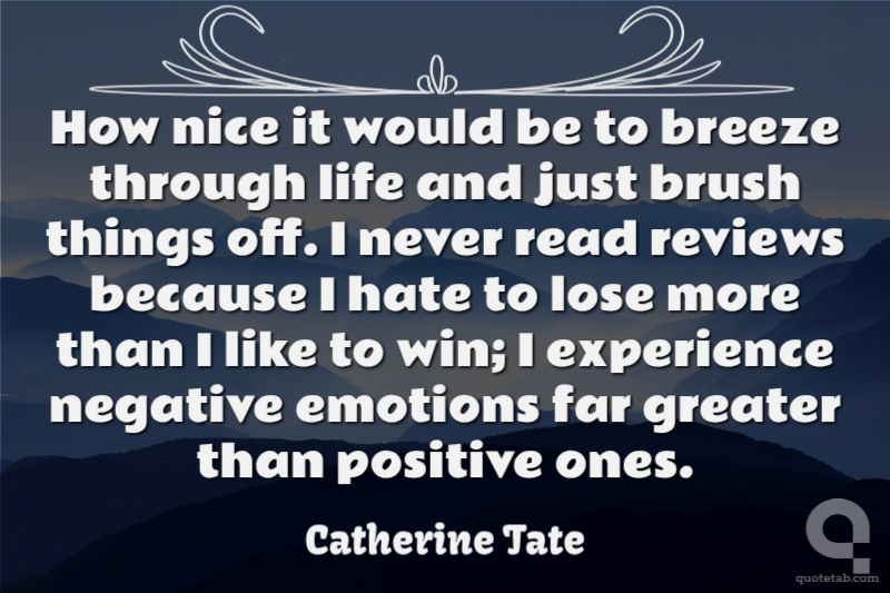 How nice it would be to breeze through life and just brush things off. I never read reviews because I hate to lose more than I like to win; I experience negative emotions far greater than positive ones.