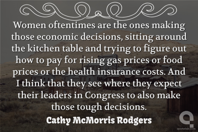Women oftentimes are the ones making those economic decisions, sitting around the kitchen table and trying to figure out how to pay for rising gas prices or food prices or the health insurance costs. And I think that they see where they expect their leaders in Congress to also make those tough decisions.