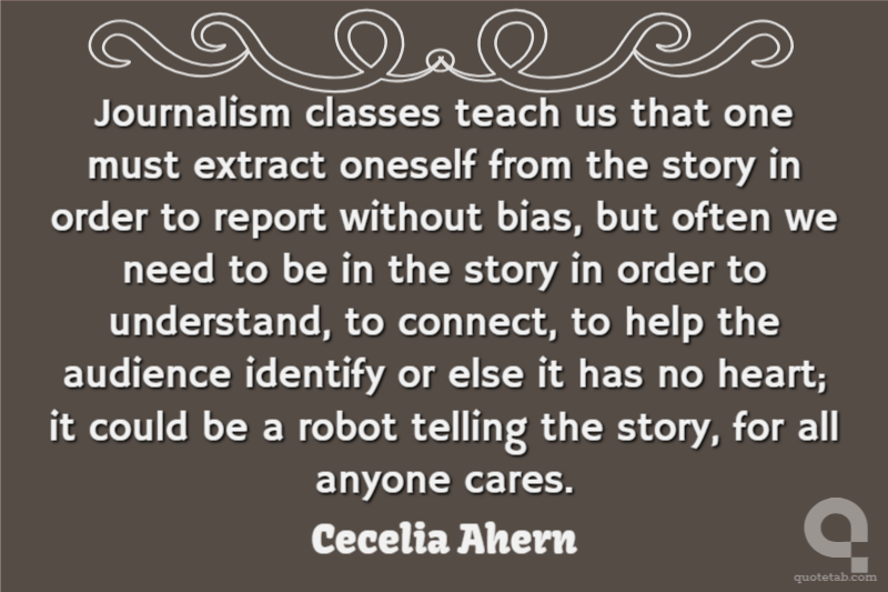 Journalism classes teach us that one must extract oneself from the story in order to report without bias, but often we need to be in the story in order to understand, to connect, to help the audience identify or else it has no heart; it could be a robot telling the story, for all anyone cares.