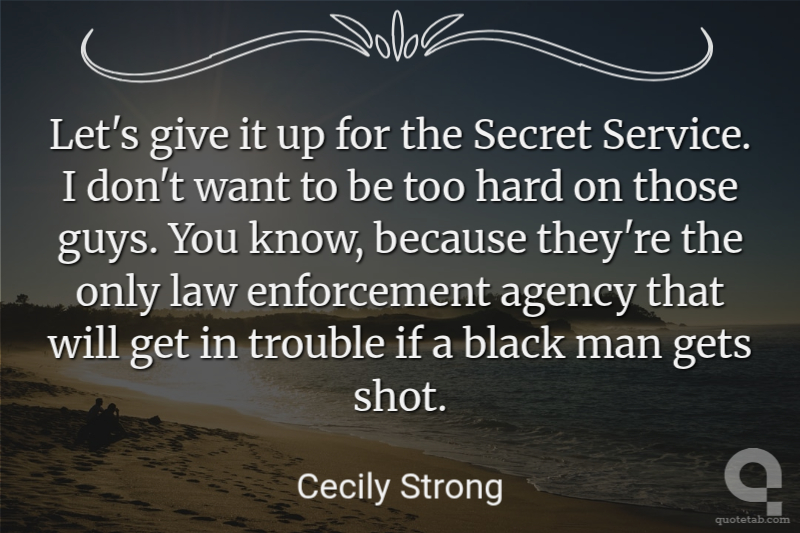 Let's give it up for the Secret Service. I don't want to be too hard on those guys. You know, because they're the only law enforcement agency that will get in trouble if a black man gets shot.