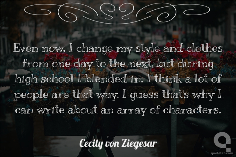 Even now, I change my style and clothes from one day to the next, but during high school I blended in. I think a lot of people are that way. I guess that's why I can write about an array of characters.