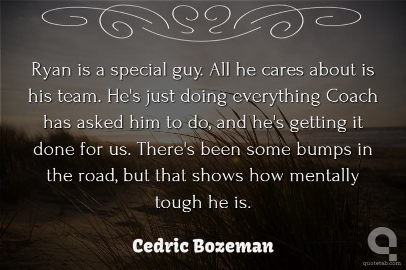 Ryan is a special guy. All he cares about is his team. He's just doing everything Coach has asked him to do, and he's getting it done for us. There's been some bumps in the road, but that shows how mentally tough he is.