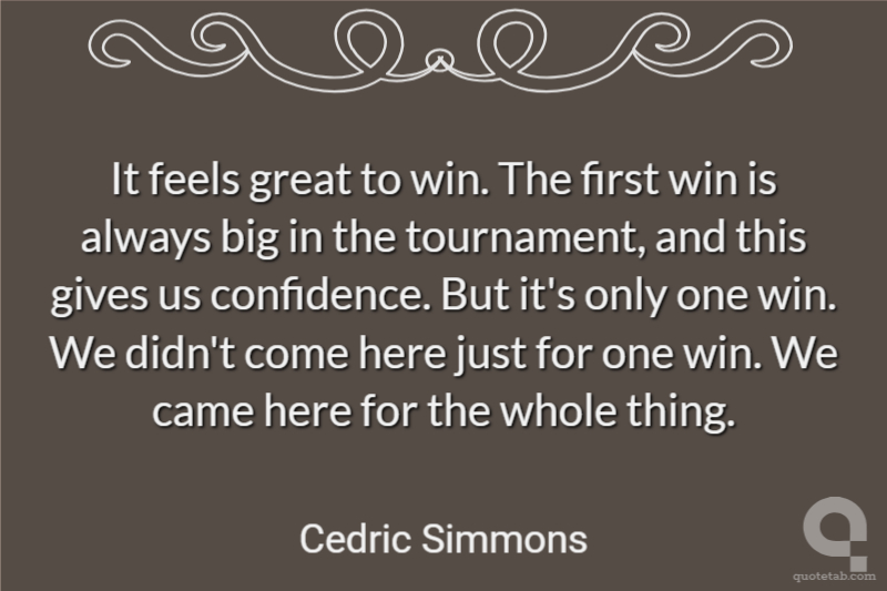 It feels great to win. The first win is always big in the tournament, and this gives us confidence. But it's only one win. We didn't come here just for one win. We came here for the whole thing.