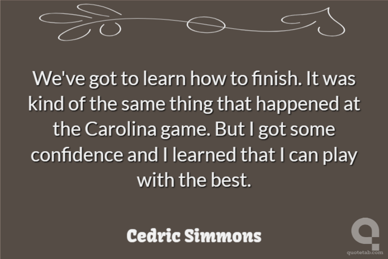 We've got to learn how to finish. It was kind of the same thing that happened at the Carolina game. But I got some confidence and I learned that I can play with the best.