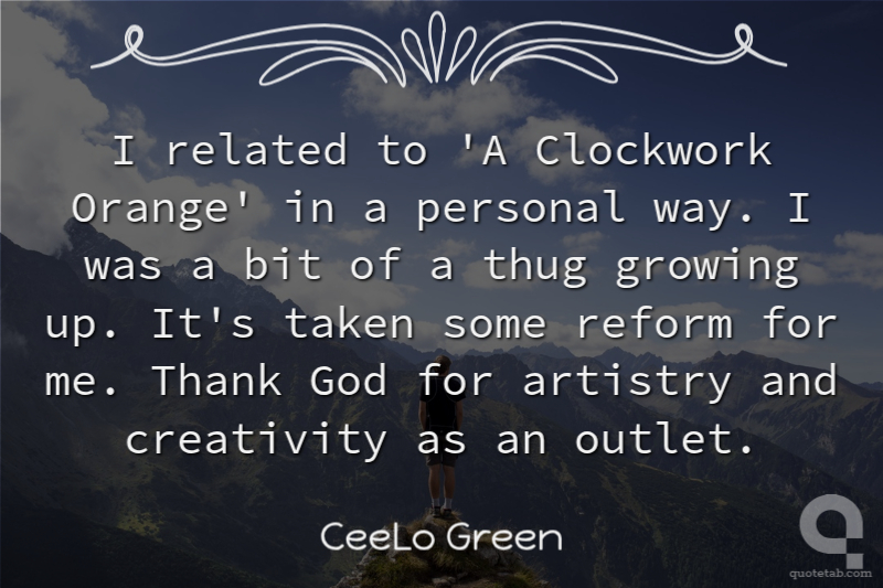 I related to 'A Clockwork Orange' in a personal way. I was a bit of a thug growing up. It's taken some reform for me. Thank God for artistry and creativity as an outlet.