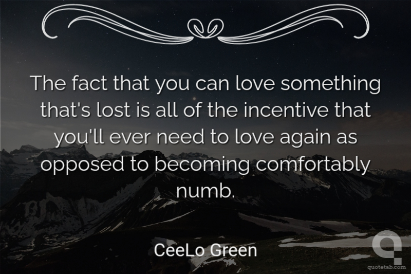 The fact that you can love something that's lost is all of the incentive that you'll ever need to love again as opposed to becoming comfortably numb.