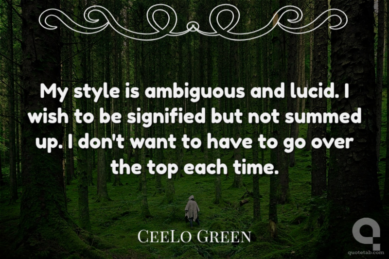 My style is ambiguous and lucid. I wish to be signified but not summed up. I don't want to have to go over the top each time.