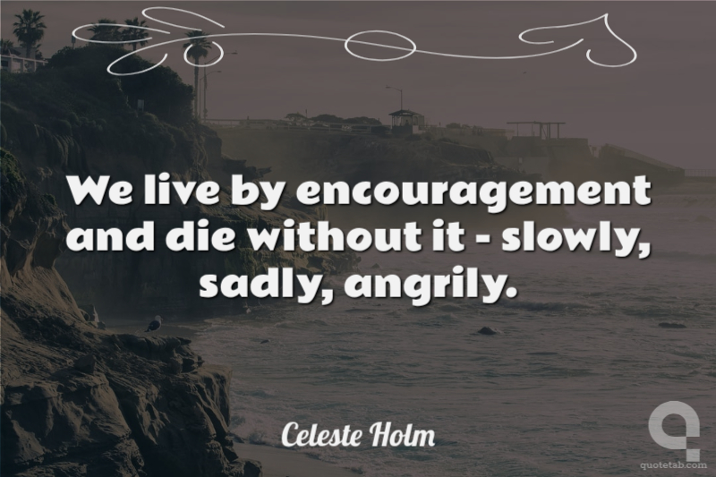 We live by encouragement and die without it - slowly, sadly, angrily.