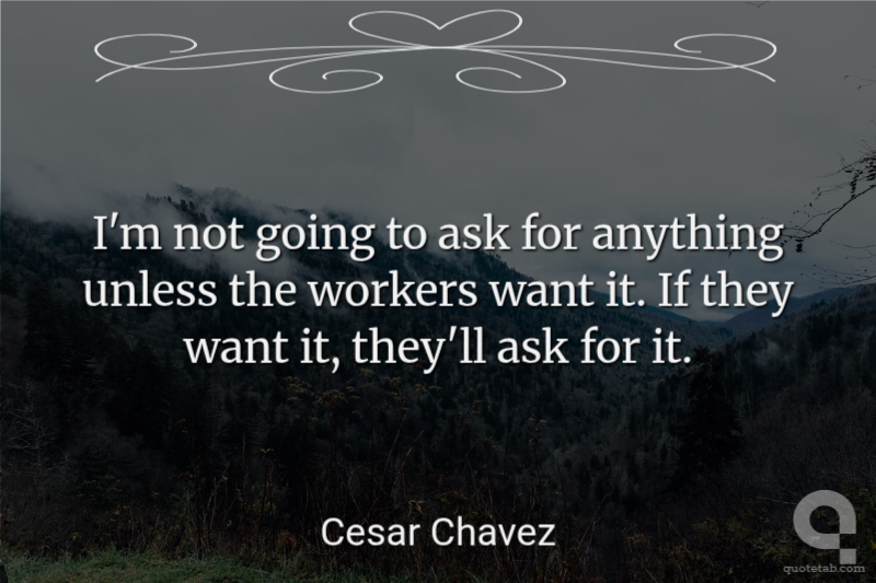 The road to social justice for the farm worker is the road of unionization. Our cause, our strike against table grapes and our international boycott are all founded upon our deep conviction that the form of collective self-help, which is unionization, holds far more hope for the farm worker than any other single approach, whether public or private. This conviction is what brings spirit, high hope and optimism to everything we do.