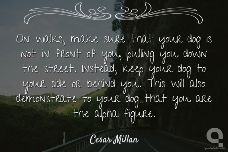 On walks, make sure that your dog is not in front of you, pulling you down the street. Instead, keep your dog to your side or behind you. This will also demonstrate to your dog that you are the alpha figure.