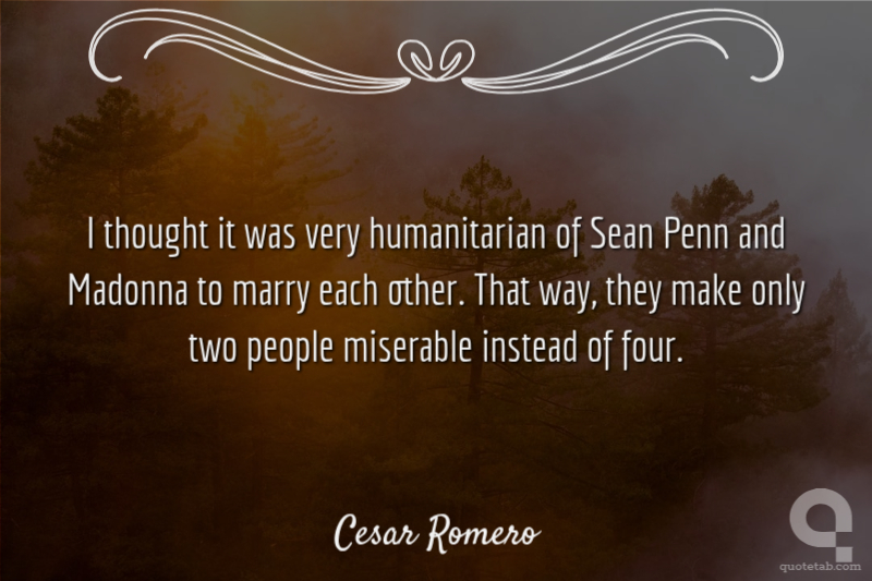 I thought it was very humanitarian of Sean Penn and Madonna to marry each other. That way, they make only two people miserable instead of four.