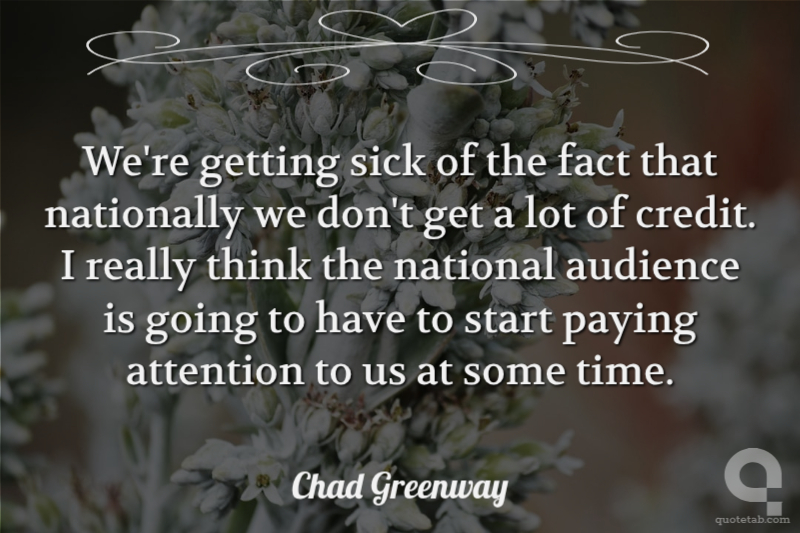 We're getting sick of the fact that nationally we don't get a lot of credit. I really think the national audience is going to have to start paying attention to us at some time.