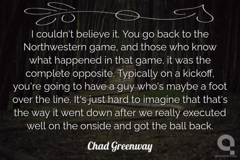 I couldn't believe it. You go back to the Northwestern game, and those who know what happened in that game, it was the complete opposite. Typically on a kickoff, you're going to have a guy who's maybe a foot over the line. It's just hard to imagine that that's the way it went down after we really executed well on the onside and got the ball back.