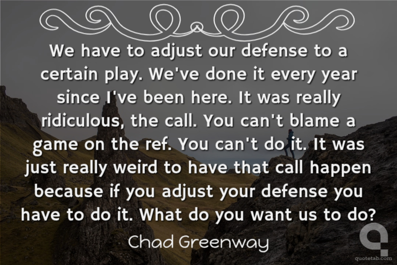 We have to adjust our defense to a certain play. We've done it every year since I've been here. It was really ridiculous, the call. You can't blame a game on the ref. You can't do it. It was just really weird to have that call happen because if you adjust your defense you have to do it. What do you want us to do?