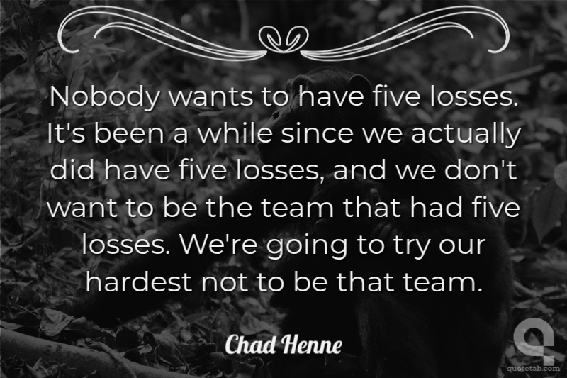 Nobody wants to have five losses. It's been a while since we actually did have five losses, and we don't want to be the team that had five losses. We're going to try our hardest not to be that team.