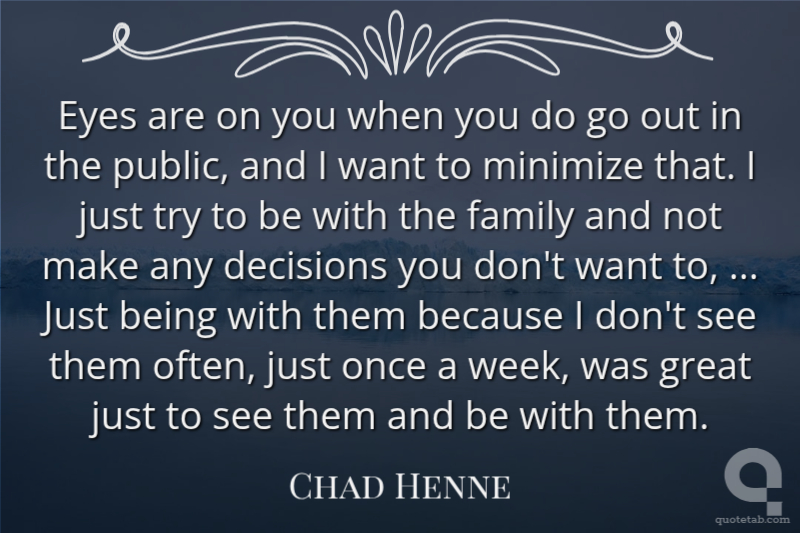 Eyes are on you when you do go out in the public, and I want to minimize that. I just try to be with the family and not make any decisions you don't want to, ... Just being with them because I don't see them often, just once a week, was great just to see them and be with them.