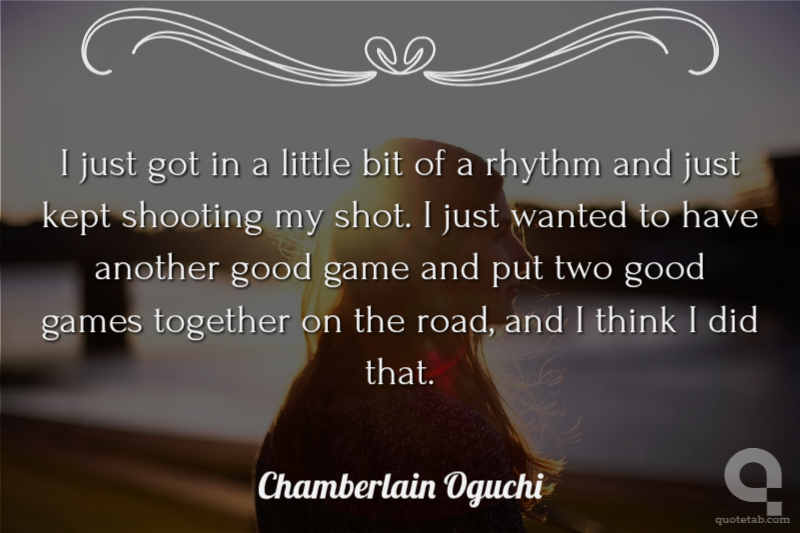 I just got in a little bit of a rhythm and just kept shooting my shot. I just wanted to have another good game and put two good games together on the road, and I think I did that.