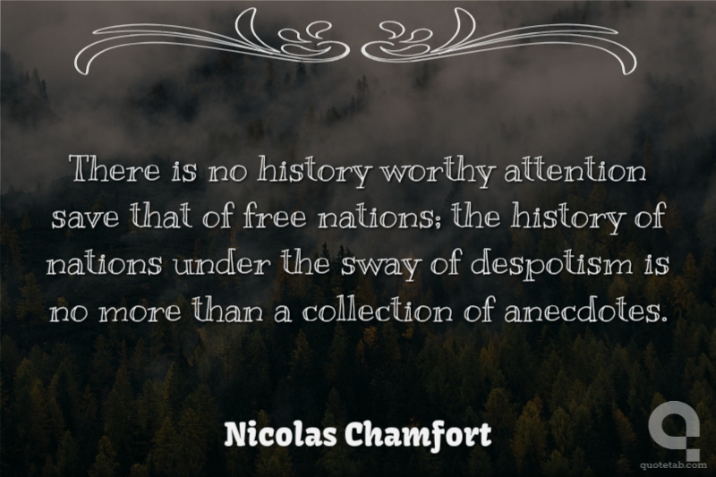 There is no history worthy attention save that of free nations; the history of nations under the sway of despotism is no more than a collection of anecdotes.