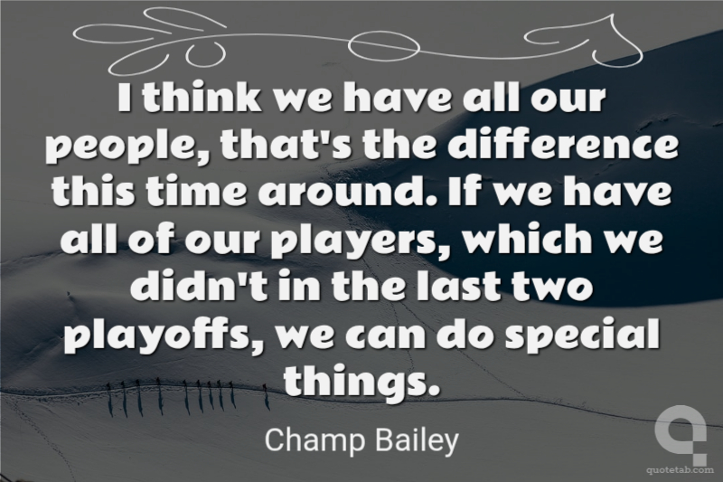 I think we have all our people, that's the difference this time around. If we have all of our players, which we didn't in the last two playoffs, we can do special things.