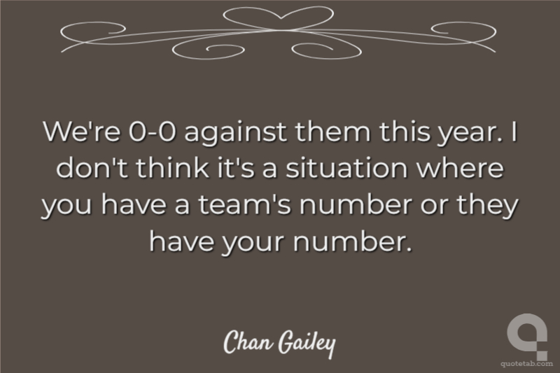 We're 0-0 against them this year. I don't think it's a situation where you have a team's number or they have your number.