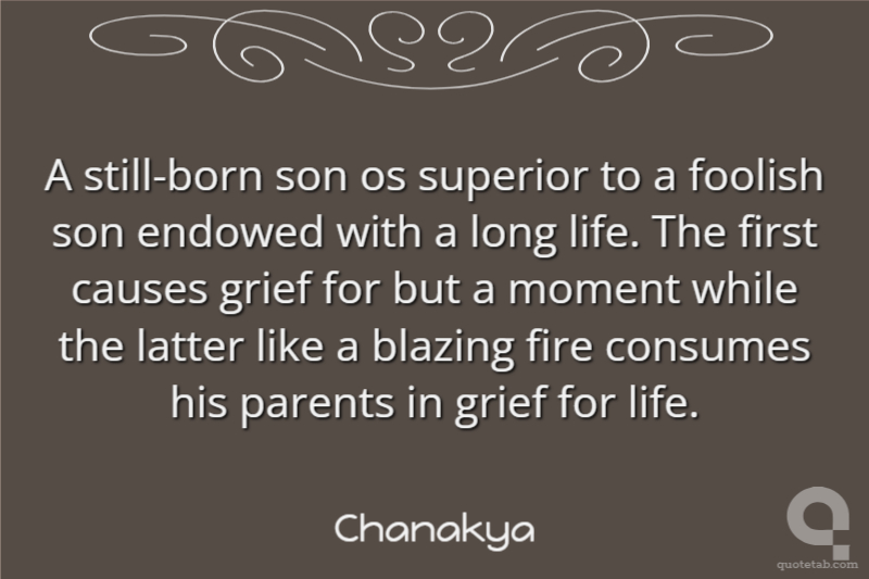 A still-born son os superior to a foolish son endowed with a long life. The first causes grief for but a moment while the latter like a blazing fire consumes his parents in grief for life.