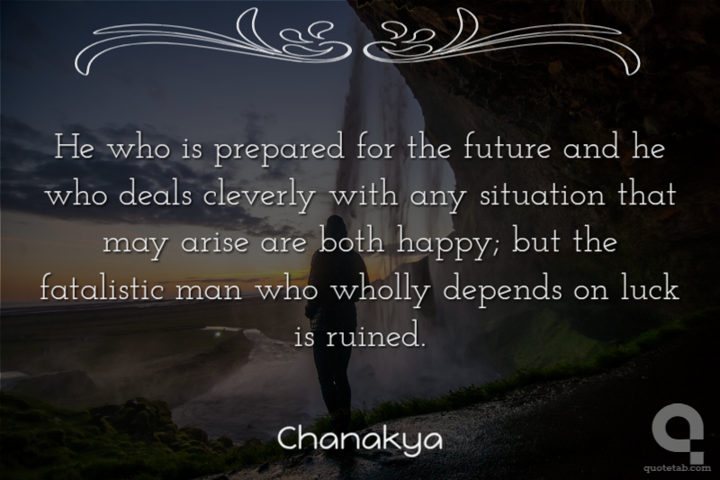He who is prepared for the future and he who deals cleverly with any situation that may arise are both happy; but the fatalistic man who wholly depends on luck is ruined.