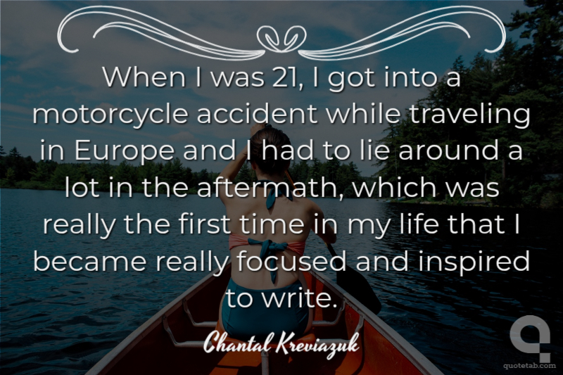 When I was 21, I got into a motorcycle accident while traveling in Europe and I had to lie around a lot in the aftermath, which was really the first time in my life that I became really focused and inspired to write.