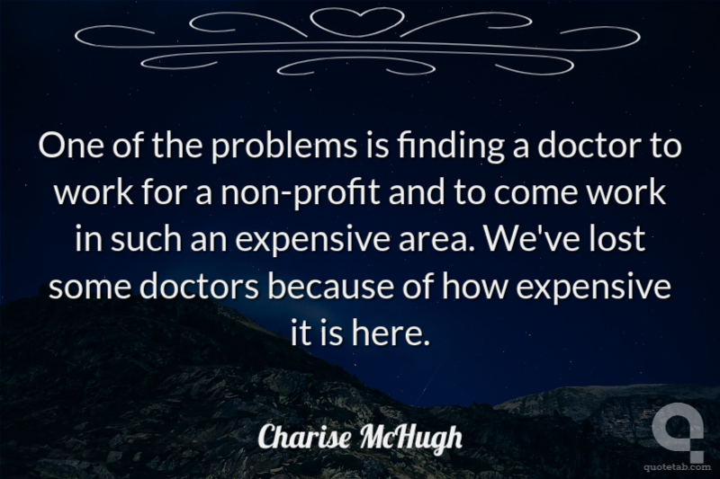 One of the problems is finding a doctor to work for a non-profit and to come work in such an expensive area. We've lost some doctors because of how expensive it is here.