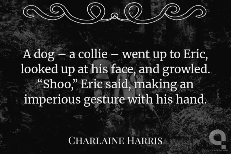 A dog – a collie – went up to Eric, looked up at his face, and growled. “Shoo,” Eric said, making an imperious gesture with his hand.