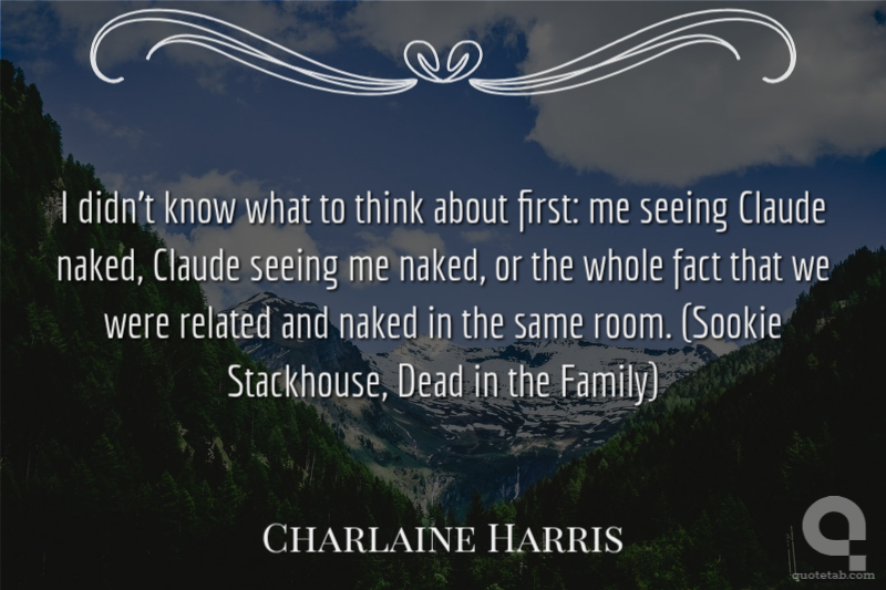 I didn't know what to think about first: me seeing Claude naked, Claude seeing me naked, or the whole fact that we were related and naked in the same room. (Sookie Stackhouse, Dead in the Family)