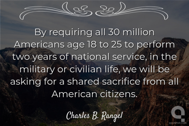By requiring all 30 million Americans age 18 to 25 to perform two years of national service, in the military or civilian life, we will be asking for a shared sacrifice from all American citizens.