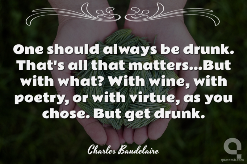 One should always be drunk. That's all that matters...But with what? With wine, with poetry, or with virtue, as you chose. But get drunk.
