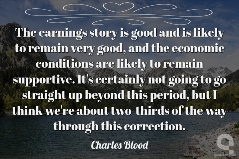 The earnings story is good and is likely to remain very good, and the economic conditions are likely to remain supportive. It's certainly not going to go straight up beyond this period, but I think we're about two-thirds of the way through this correction.