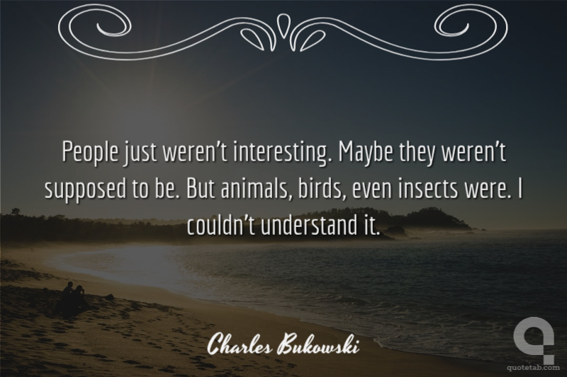 People just weren't interesting. Maybe they weren't supposed to be. But animals, birds, even insects were. I couldn't understand it.