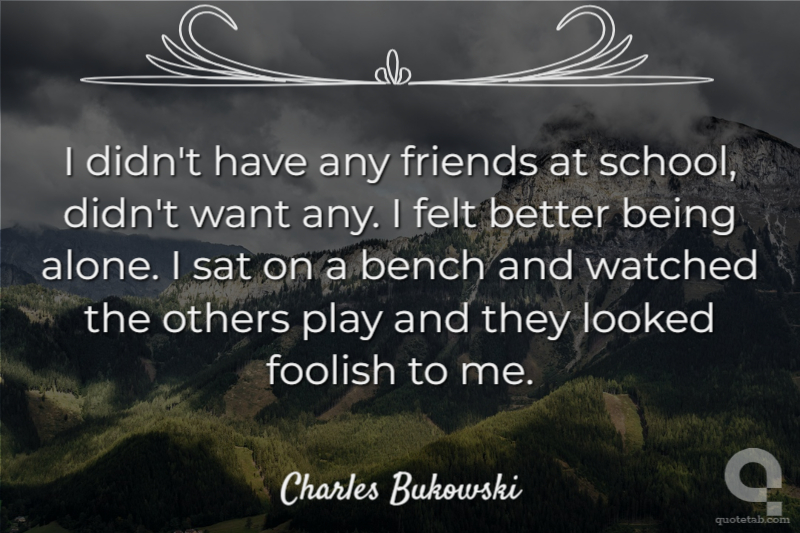I didn't have any friends at school, didn't want any. I felt better being alone. I sat on a bench and watched the others play and they looked foolish to me.