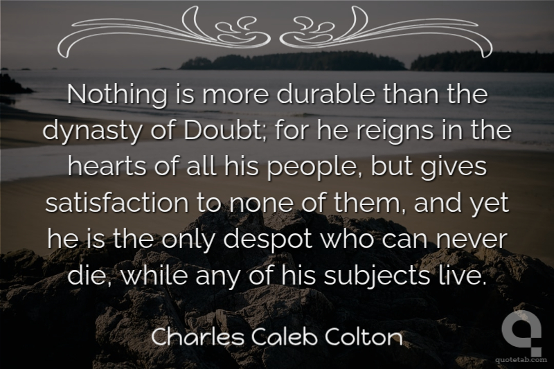Nothing is more durable than the dynasty of Doubt; for he reigns in the hearts of all his people, but gives satisfaction to none of them, and yet he is the only despot who can never die, while any of his subjects live.