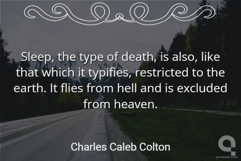 Sleep, the type of death, is also, like that which it typifies, restricted to the earth. It flies from hell and is excluded from heaven.