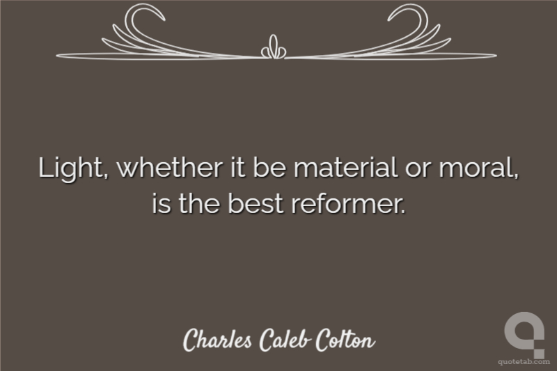Light, whether it be material or moral, is the best reformer; for it prevents those disorders which other remedies sometimes cure, but sometimes confirm.