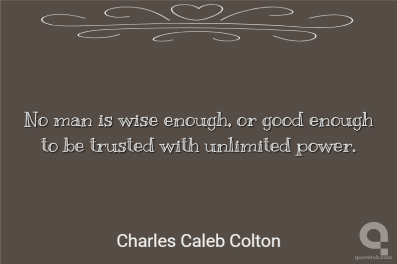 No man is wise enough, or good enough to be trusted with unlimited power.