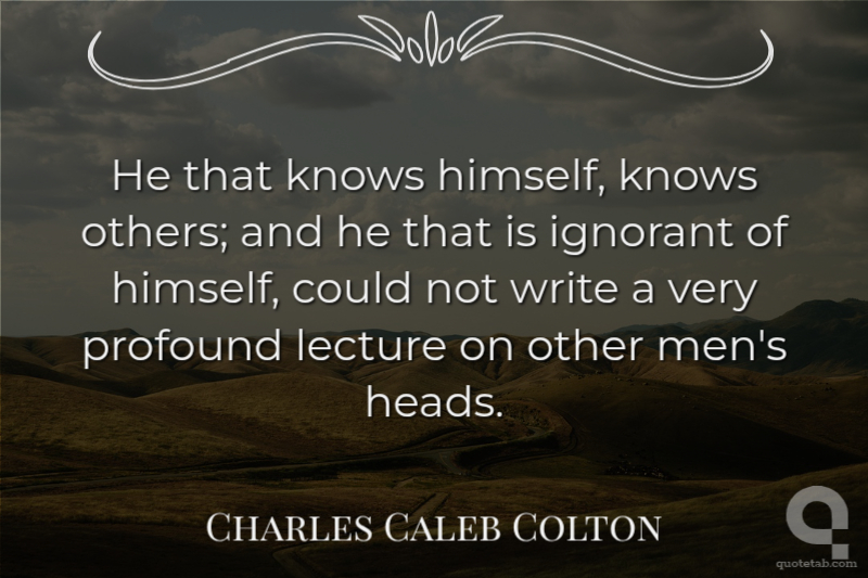 He that knows himself, knows others; and he that is ignorant of himself, could not write a very profound lecture on other men's heads.