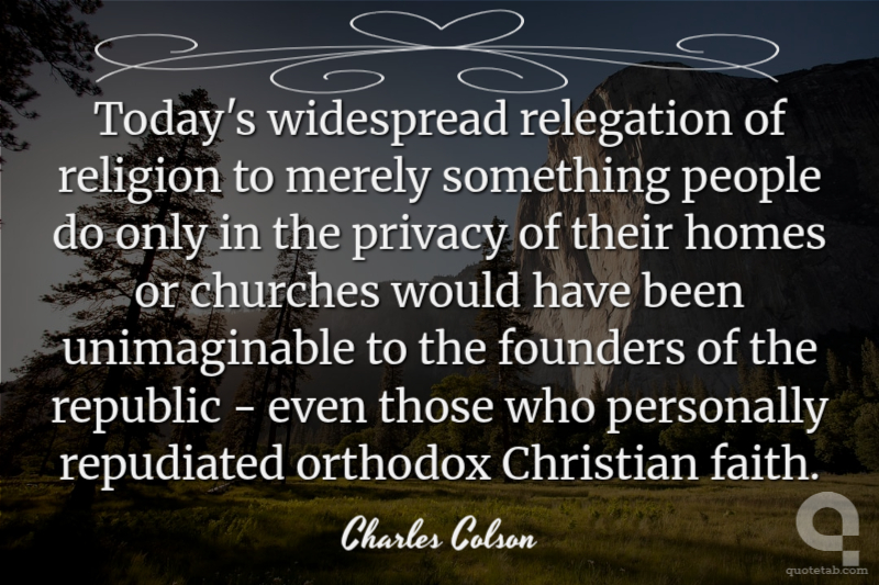 Today's widespread relegation of religion to merely something people do only in the privacy of their homes or churches would have been unimaginable to the founders of the republic - even those who personally repudiated orthodox Christian faith.