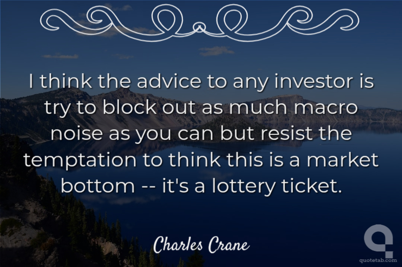 I think the advice to any investor is try to block out as much macro noise as you can but resist the temptation to think this is a market bottom -- it's a lottery ticket.